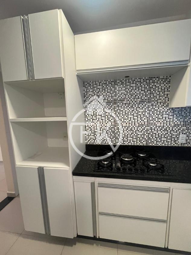 Cozinha com armários planejados, bancadas e pia em granito e fogão cooktop;
